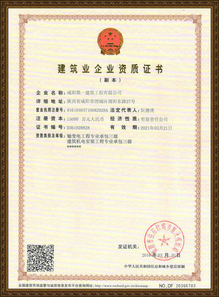 公司名稱:咸陽第一建筑工程有限公司
